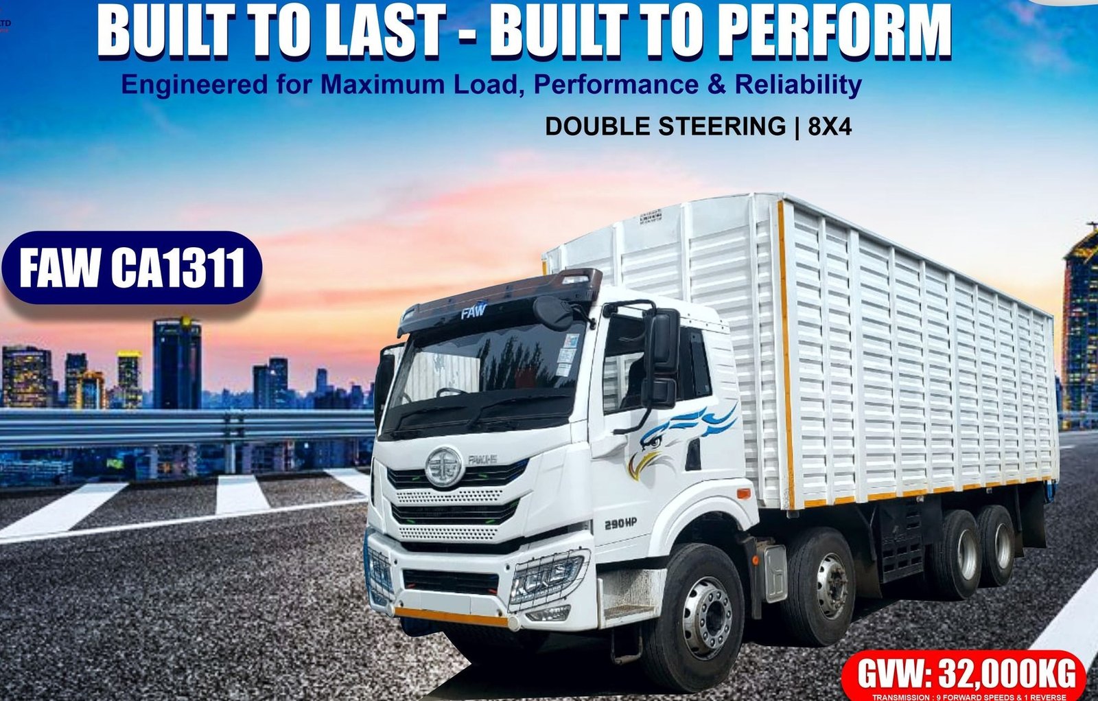 The FAW CA1311 is a heavy-duty truck engineered for high-capacity transport and demanding commercial operations. Built with a strong chassis and a powerful engine, it delivers outstanding performance, stability, and efficiency over long distances and tough terrains. Its spacious, driver-focused cabin ensures comfort and control, making it an ideal choice for logistics, construction, and bulk cargo businesses seeking reliability and productivity.